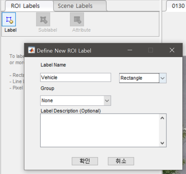4. ROI Labels 항목에서 Label을 클릭한 다음, 학습을 원하는 클래스의 이름과 형태를 지정해주면 됩니다.