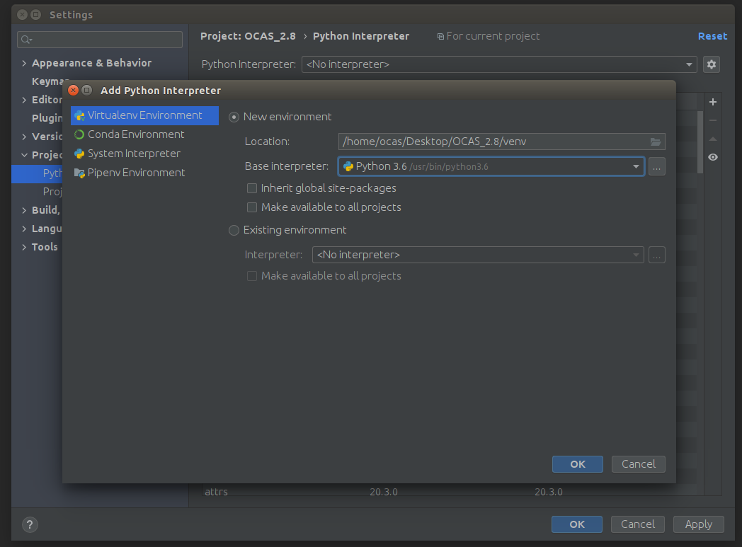 별도의 가상환경이 아니라면 base interpreter를 클릭하면 파이썬 2.7 버전과 3.6 버전이 링크됩니다. 설치 이전 pip 모듈을 통해 많은 라이브러리가 설치되어있다면 초기 빌드하는 과정에서 n분의 시간이 소요됩니다. 모든 빌드가 완료되었다면 리눅스나 윈도우 환경과 동일하게 사용하면 됩니다.
