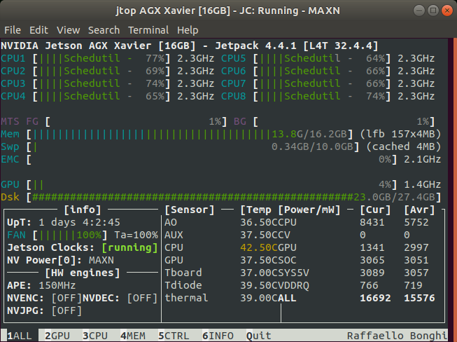 📊 Simple package to monitoring and control your NVIDIA Jetson [Xavier NX, Nano, AGX Xavier, TX1, TX2] - rbonghi/jetson_stats