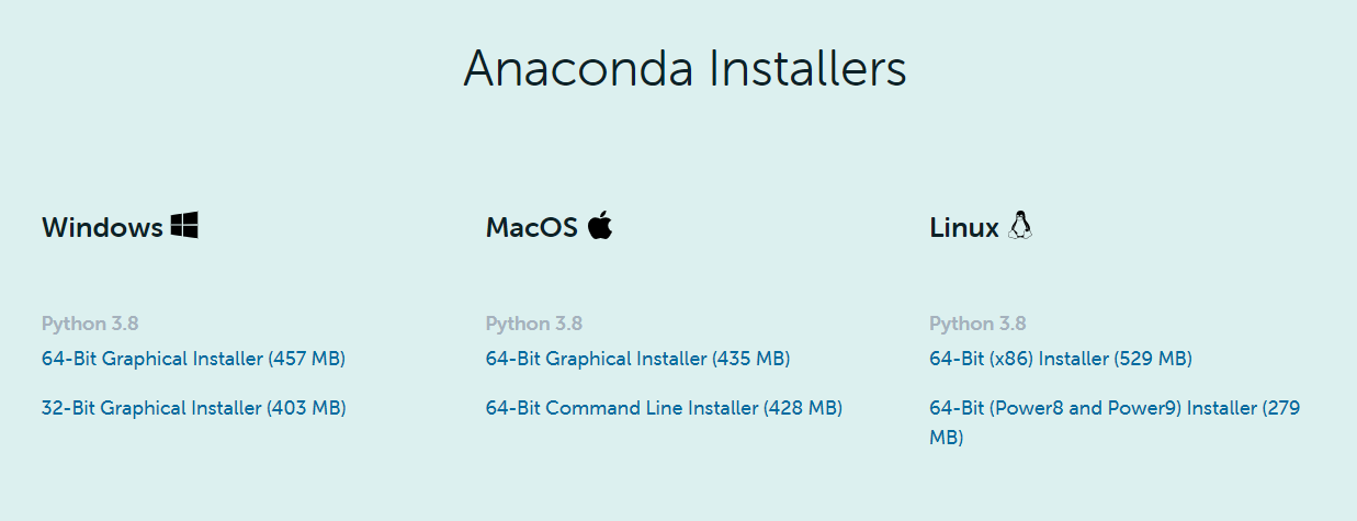 링크를 통해 아나콘다를 설치합니다. 운용되는 환경에 맞춰 파일을 다운로드 해주세요.