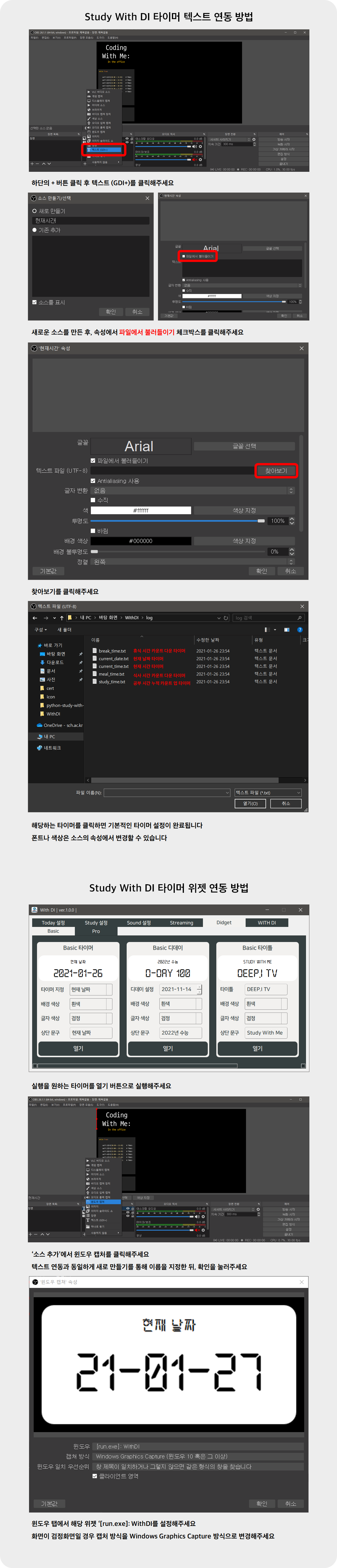 Study With DI 텍스트 및 위젯 타이머 설정 방법