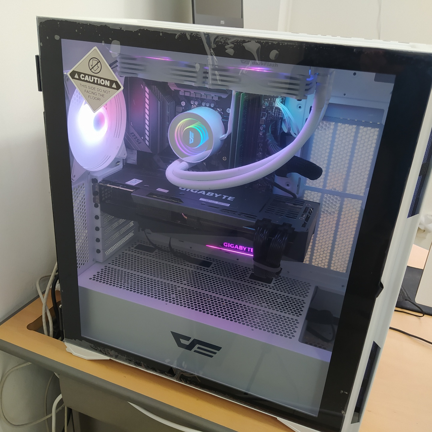 3090의 가로폭이 320mm, PC 케이스의 그래픽 카드 장착 한도도 320mm였습니다. 이론적으로는 장착이 됐지만, 여러 부품이나 케이스의 간섭으로 불가능한 상태였습니다. 허탈함을 뒤로한 채, 급한 상황이 아니니 추후 케이스를 구매하자고 의견이 모였습니다. 그리고 1월 말, 드디어 장착이 되었습니다.
