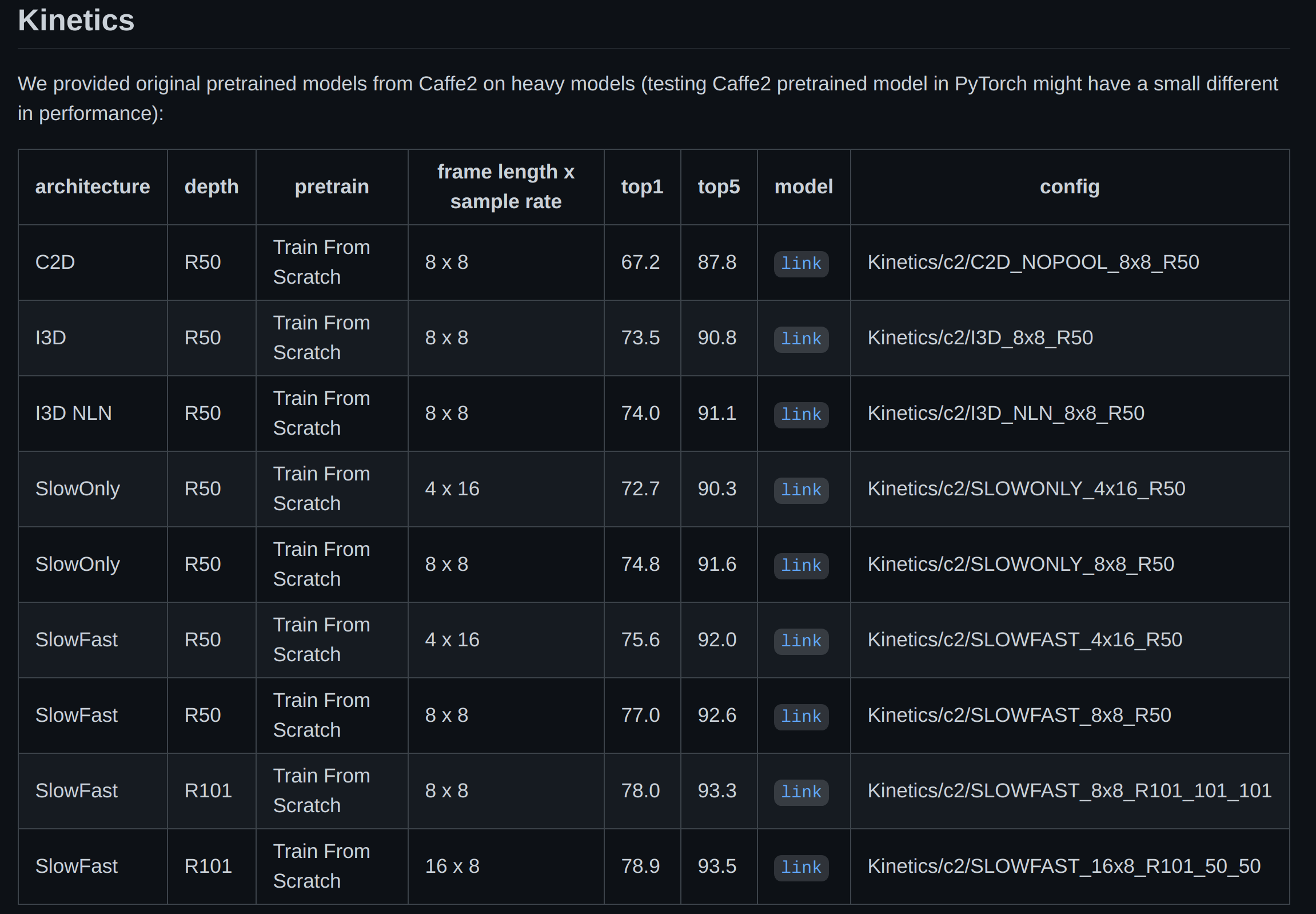 가중치 파일 링크 : github.com/anhminh3105/SlowFast/blob/master/MODEL_ZOO.md