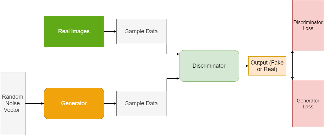 GAN은 일반적으로 판별자 네트워크 기반 크로스 앤트로피 손실 함수를 통해 학습하게 됩니다.